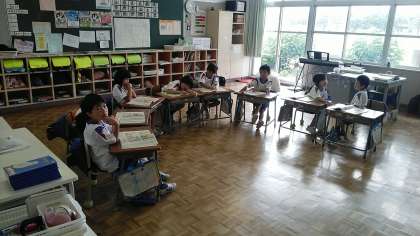 1年生の2時間目は、道徳科の学習でした。かぼちゃのつるというお話を読みながら考えていました。