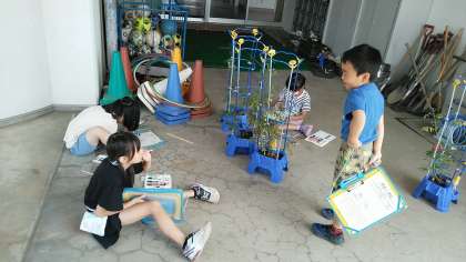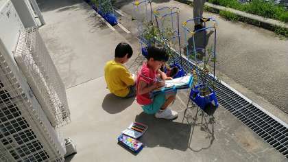2年生の1時間目は、生活科の学習でした。育ててきた野菜もいろいろ収穫できるようになってきました。
