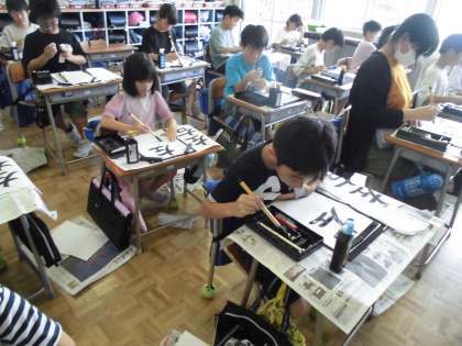 4年生の5時間目は、書写の学習でした。筆順と字形に気を付けて「左右」を書きます。それぞれの字のポイントを確認し、今日は「左」を一生懸命書きました。