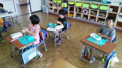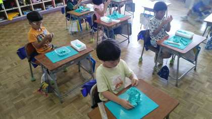 1年生は、4時間目にねんどで何かをつくっていました。ねんどのやわらかい触感を楽しんでいました。