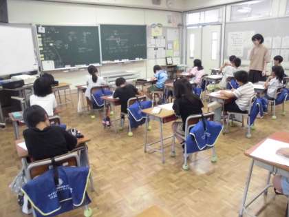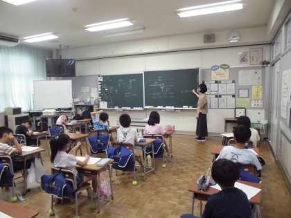 3年生の6時間目は算数の学習でした。学習のたしかめテストの直しをしていました。先生と一緒に式を確認したり、自分で解き直したりしていました。6時間目ではありますが、集中して取り組んできました。