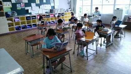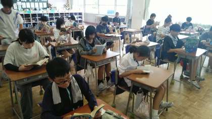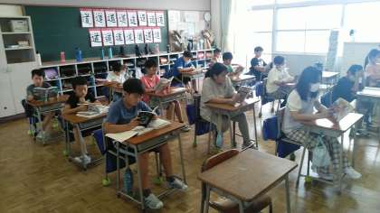 今日の読書タイムの様子です。6年生教室と5年生教室と2年生教室の様子です。