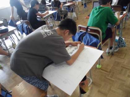 5年生の5時間目は、防火ポスターづくりでした。今年度の標語をレタリングし、イラストを描いていました。