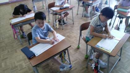 2年生の5時間目は、国語の学習でした。ドリルを使って漢字の練習をしていました。丁寧にしっかりとかいていました。