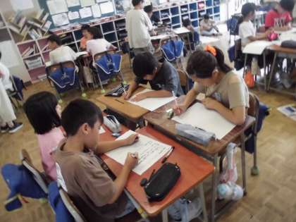 4年生の2時間目は、国語の学習でした。先生や友達にインタビューした内容を中心に一人一人記事にし、グループで大きな紙にまとめています。完成が楽しみです。