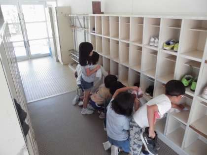 1年生の4時間目は、大そうじでした。1学期お世話になった下足箱を雑巾で丁寧に拭いていました。自分の下足箱だけではなく、使われていない場所も拭いていました。気持ちよく夏休みを迎えられそうです。