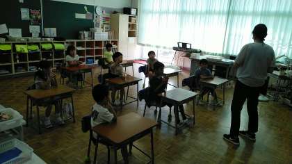 1年生教室では、だらまつりに出したミニ行灯のお礼のスケッチブックが配られていました。