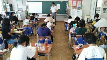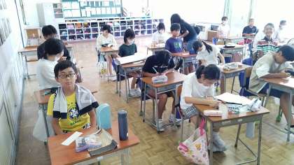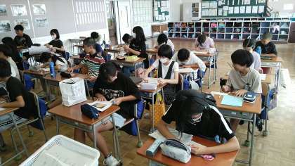 6年生教室では、夏休みの作品の作品票をかいていました。