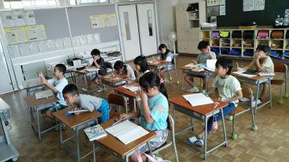 2年生教室では、連絡帳をかいていました。