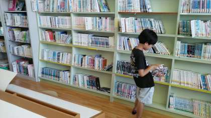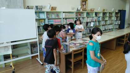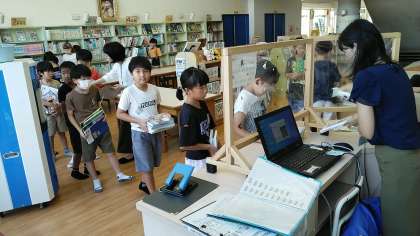 3年生は、図書ラウンジで夏休み中に借りていた本の返却と新しく借りる本を選んでいました。