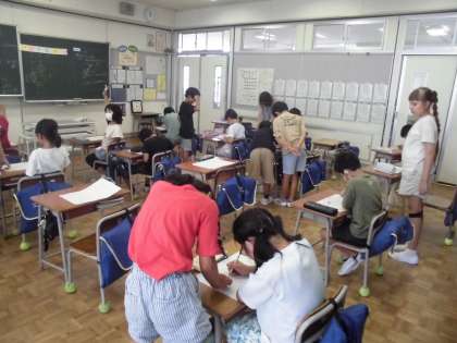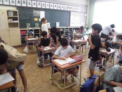 3年生の4時間目は、算数の学習でした。1000より大きい数について、「1000が10個で10000」等、0の数を確かめながらプリントを進めていました。友達と教え合う姿にほっこりします。