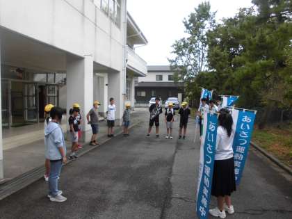 今日から7日(木)まで、和合中学校の生徒さんが四方小学校に来て、小中合同挨拶運動を行います。今日は6名の生徒さんが来られ、運営委員会の子供たちと一緒に挨拶運動を行いました。今日は、恥ずかしそうに中学生のお兄さんお姉さんに挨拶をする子供たちが多かったですが、明日はもっと元気に挨拶を交わしてほしいと思います。