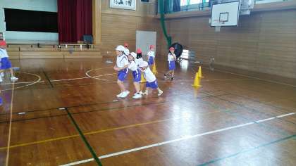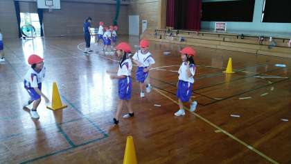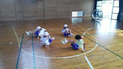 1・2年生の3時間目は、体育の学習でした。体育館で表現運動をしていました。写真のグループは、「コーヒーカップ」と「ジェットコースター」と「お化け屋敷」のグループです。