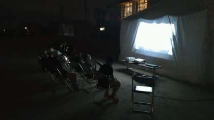 だいぶん暗くなってきました。映画の鑑賞会も始まりました。