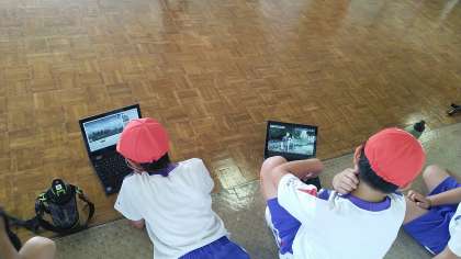 5年生の5時間目は、体育の学習でした。鉄棒の練習をしていました。模範動画を見たり、自分の動画を見たりしながら練習を進めていました。