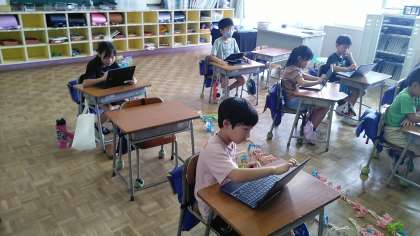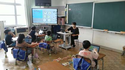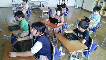 2年生は、2時間目にクロームブックを使って、動きのある絵を考えて描いていました。