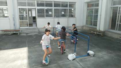 今日も昼休みに一輪車で遊んでいます。