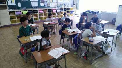 2年生の5時間目は、算数科の学習でした。たし算のひっ算のやり方をみんなでやって確認していました。
