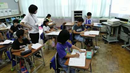 3年生の5時間目は、算数科の学習でした。答えが3桁になるかけ算のひっ算の練習をしていました。