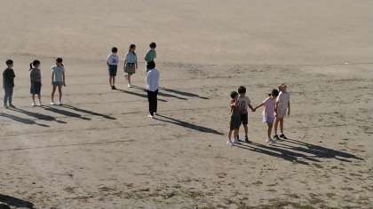 1時間目、3年生がグラウンドでかげを見ていました。理科の学習ならかげの方向 国語の学習ならかげおくり どっちが正解?