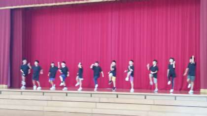 4年生の2時間目は、学習発表会の練習の時間でした。体育館でダンスを踊っていました。とても楽しそうに踊っていました。