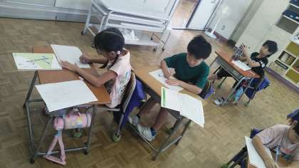 2年生の3時間目は、書写の時間でした。今日は、「いろはうた」に出てくるひらがなを練習しました。11人みんなが集中して取り組んだので、全員練習プリントを書き終わることができました。