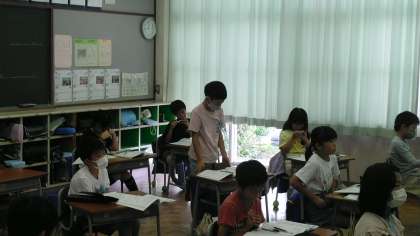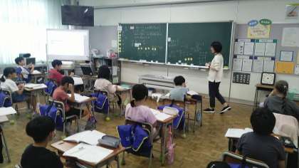 3年生の4時間目は、算数科の学習でした。何十÷何の計算の仕方を考えていました。「十の束が…」どうやら束で考えているみたいです。