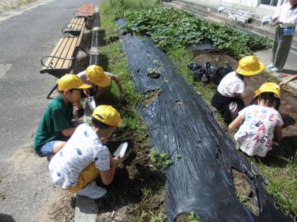 2年生の4時間目は、生活科の学習でした。夏野菜を育てた畑に今度は、秋冬野菜を育てます。今日は、草むしりや土を柔らかくして、秋冬野菜を育てる準備をしました。