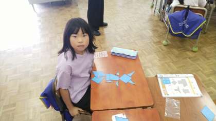 2年生の2時間目は、算数科の学習でした。図形を組み合わせて何かをつくっていました。