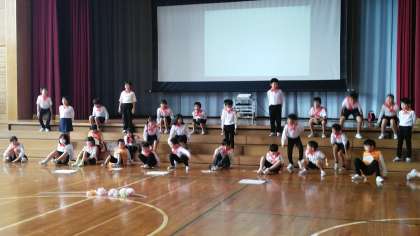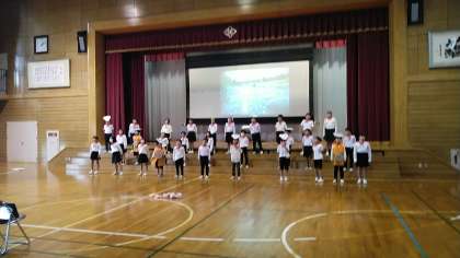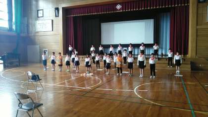 2・3年生の5時間目は、体育館で学習発表会の練習でした。衣装を付けて楽しそうに歌っていました。
