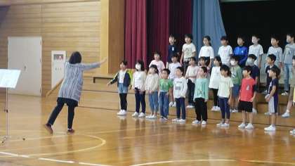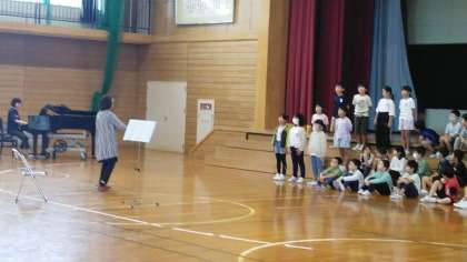 今日も地元に住む橋本先生に合唱の練習を見ていただきました。橋本先生の話や手の動きを見ながら歌うと、歌声がどんどんよくなっていきました。