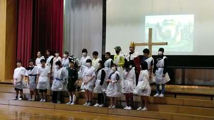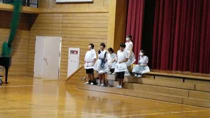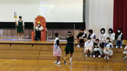 6年生の学習発表会の練習が始まりました。衣装や小道具もだいぶんそろってきました。