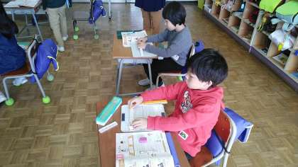 1年生の2時間目は、算数科の学習でした。9+4の計算をブロックを使って考えていました。