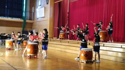 次は、5年生の「四方祝い太鼓〜煌〜」の発表です。