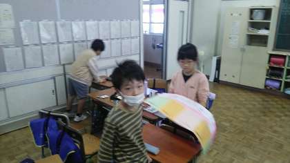4時間目にもう一度3年生教室を覗くと、手紙が完成して、届けに行く練習をしていました。このあと届けに行くみたいです。