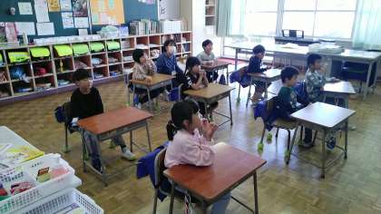 1年生は、5時間目に今日の校内学習発表会の他の学年を見た感想を入れたおてがみをかこうとしていました。