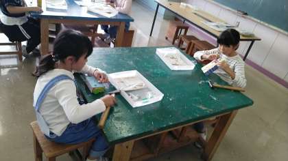 3年生の6時間目は、図画工作科の学習でした。くぎうちトントンの作品がそろそろ仕上がってきました。