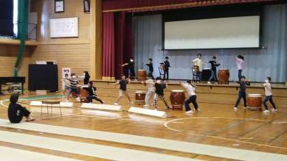 5年生の2時間目は、外部のボランティアの二上先生の和太鼓指導の時間でした。校内学習発表会で発表した内容を見ていただいて、更にパワーアップできることについてアドバイスをもらっていました。