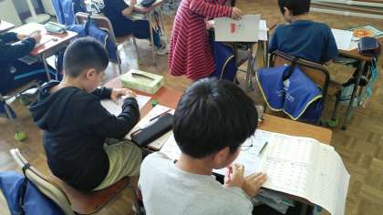 4年生の4時間目は、算数の学習でした。わり算のひっ算の問題をたくさん解いていました。