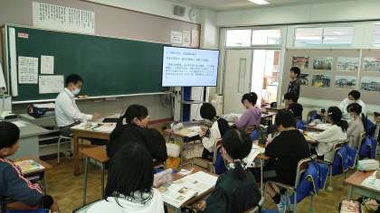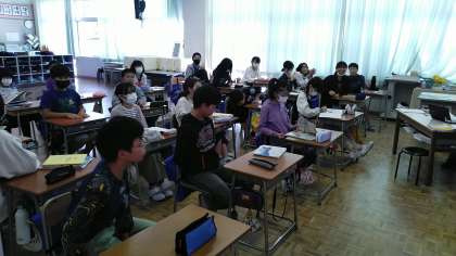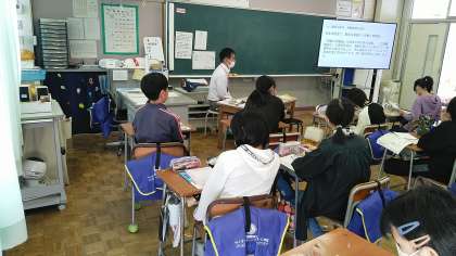 6年生の4時間目は、社会科の学習でした。「鳥獣戯画」について、みんなに説明していました。