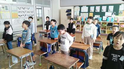 1年生教室と2年生教室と3年生教室の朝の歌練習の様子です。「みんなの町 四方」のきれいな歌声が響いていました。