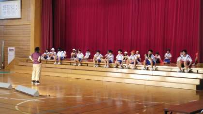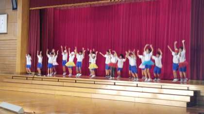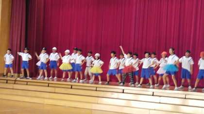 4年生の2時間目は、体育館で学習発表会の練習でした。もっときれいに見えるダンスのコツを教えてもらって、練習していました。