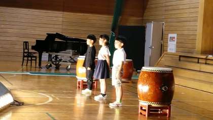 学習発表会が始まりました。まずは、1年生のはじめの言葉です。