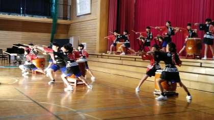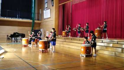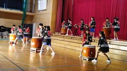 次は、5年生の「四方祝い太鼓〜煌〜」です。力強い太鼓の音が響きわたりました。