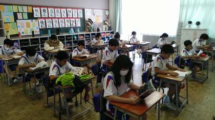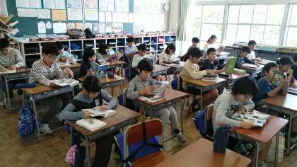今日の読書タイムは、4年生教室と5年生教室と6年生教室の様子です。