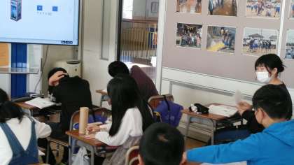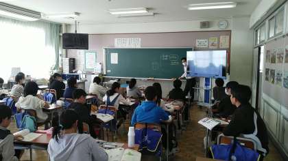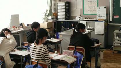 6年生の1時間目は、算数科の学習でした。いろいろな立体の体積を求めていました。底面の形でかわる底面積の求め方について考えていました。