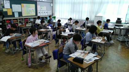 3年生の4時間目は、社会科の学習でした。映像や社会科の教科書を見ながら工場の工夫を探していました。