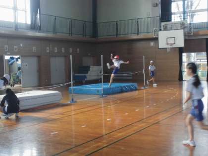 6年生の1時間目は、体育の学習でした。助走の仕方を考えながら、はさみ跳びに挑戦しています。