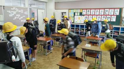 担任が出張だったので、5年生の帰りの会に参加しました(教頭)。自分たちで帰りの会をしっかり進めていました。教室で「さようなら」をしたあと、玄関まで見送ったのですが、玄関でも「さようなら」と声をかけて帰る子供ばかりでした。すごいぞ、5年生。