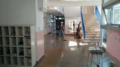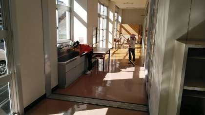 今日の掃除中の様子です。四方っ子は、とても一生懸命学校をきれいにしてくれます。